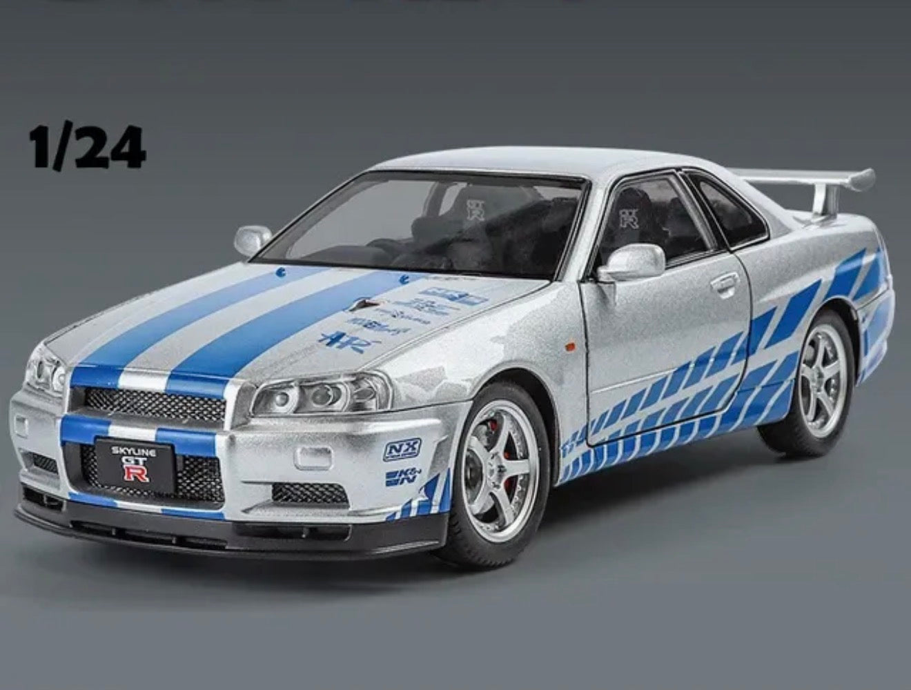 - 1:24 Scale Model – Designed to true 1:24 scale, capturing the aggressive stance and custom mods of the iconic GTR-R34.