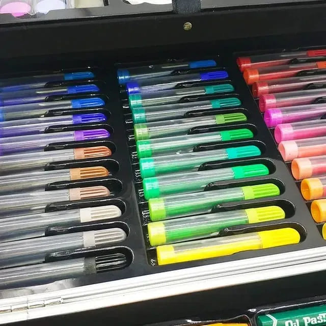 - A super artist's kit, with 145 pieces of painting tools, including oil pastels, colored pencils, crayons, watercolor paints, sharpeners and palettes, erasers and other various artistic needs. Your child will get all the materials they need to exercise their creativity.