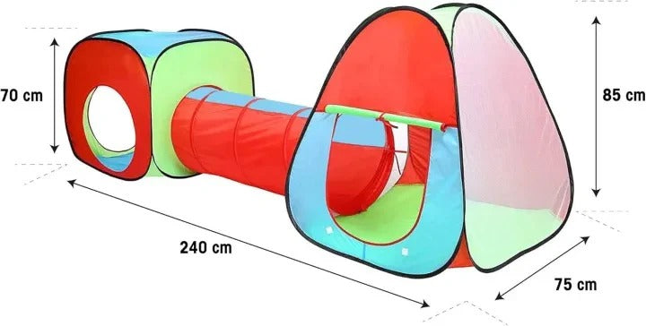 - 3 Piece Pop Up Play Tent with Storage Bag (2 Tents and 1 Tunnel Included)
