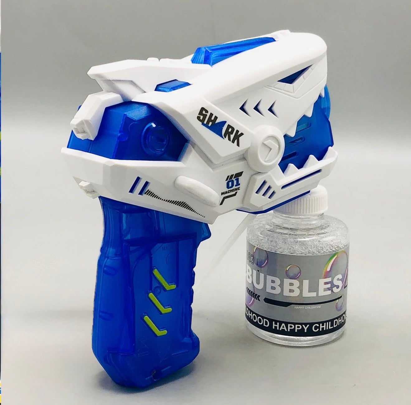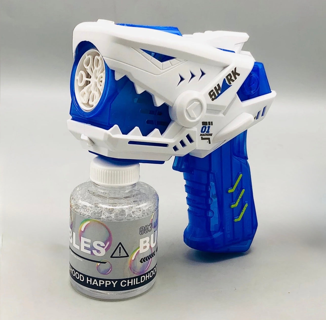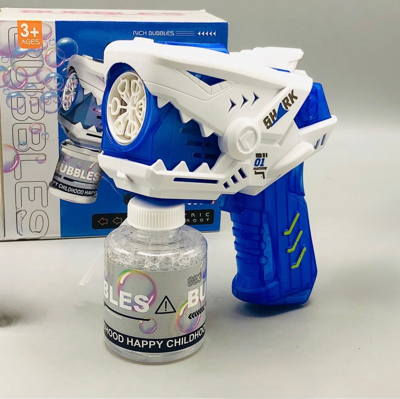 6-Holes Mini Shark Bubble Gun – Colorful Bubbles & LED Light Fun for Kids