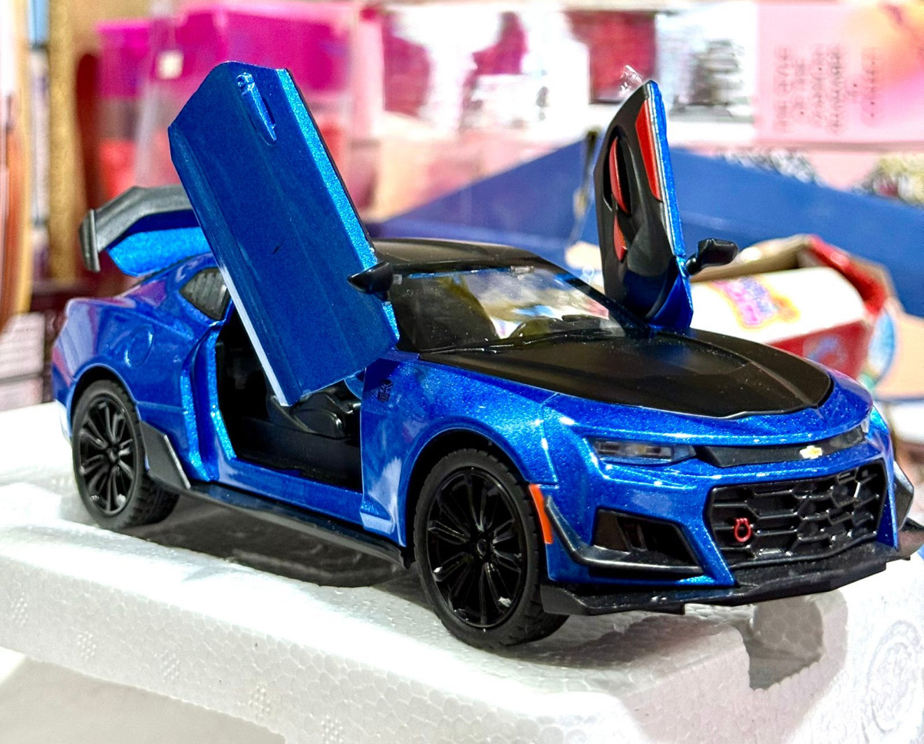 Discover the premium-quality 1:24 Diecast Chevrolet Camaro ZL1 Model Car, designed for collectors, display lovers, and kids who enjoy realistic model cars. This highly detailed model features a metallic finish, bold front styling, sporty body design, and a precisely crafted interior that reflects the real Camaro ZL1. The openable scissor-style doors allow a closer look at the dashboard, seats, and fine interior touches. Made from durable diecast metal with ABS components, this model ensures long-lasting strength and a premium feel. The built-in pull-back action adds excitement, making it perfect for both decor and play. Whether added to a collection or gifted to a car enthusiast, this Camaro ZL1 model is a standout piece from Kamran Traders.